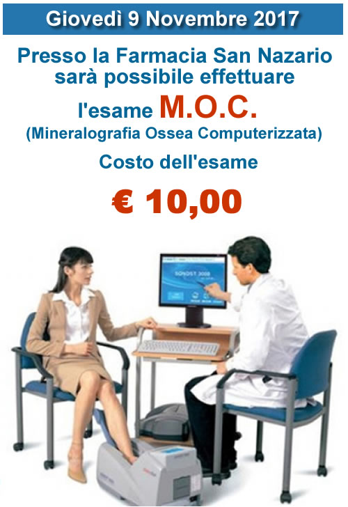 La MOC, cioè la Mineralometria Ossea Computerizzata, è un esame di cui ci si avvale per misurare la quantità di calcio presente nelle ossa. Serve a determinare se la mineralizzazione si è ridotta e se è già comparsa l'osteoporosi. Si rivela dunque utile soprattutto per le donne in menopausa, poiché sono ritenute a rischio di demineralizzazione ossea.
