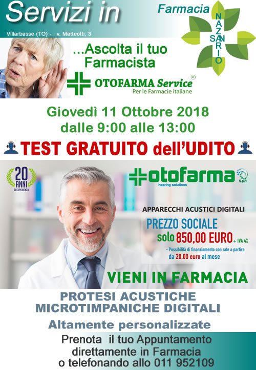 La Farmacia San Nazario di Villarbasse offre molteplici servizi per la cura della Salute dedicati a tutta la popolazione. I servizi della Farmacia San Nazario sono fruibili da tutta la popolazione non solo della cittadina di Villarbasse ma sono facilmente fruibili da parte di abitanti di tutte le cittadine ed i paesi presenti nei pressi della propria sede. In particolare la Farmacia San Nazario di Villarbasse è facilmente raggiungibile dai cittadini di Rivoli, che si trova a soli 7 km di distanza, percorribili in poco più di una decina di minuti.
